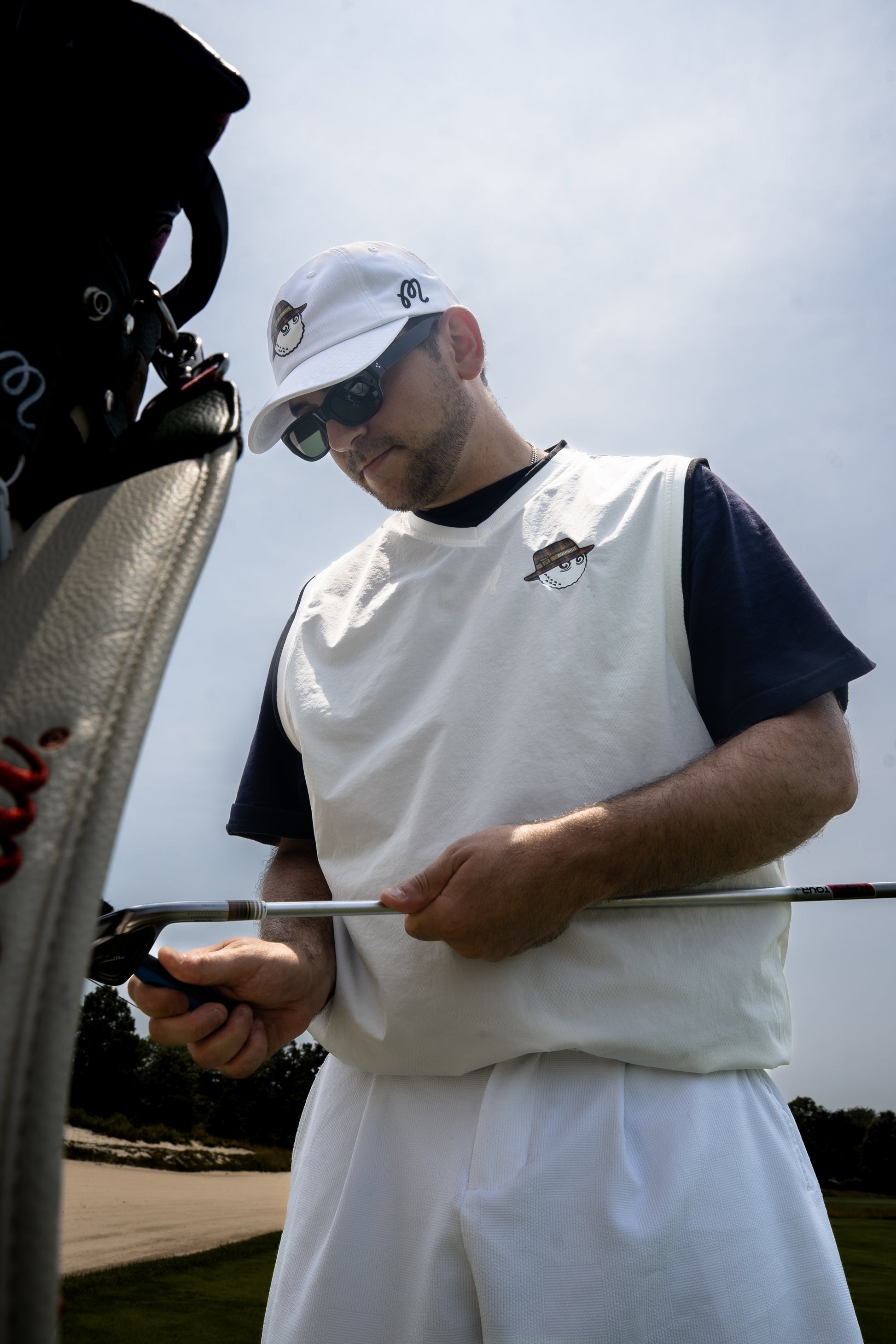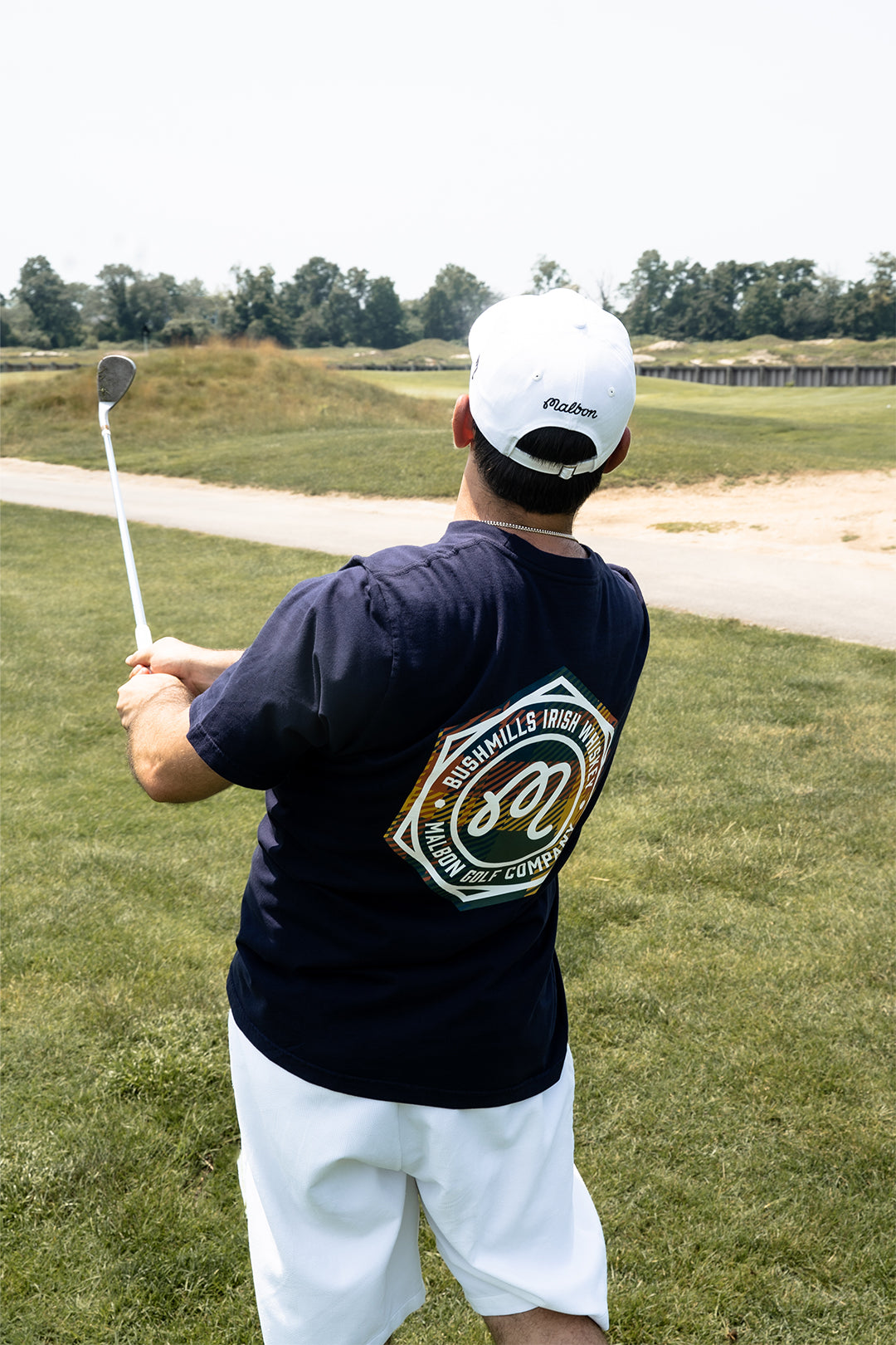 The Malbon x Bushmills White Hat is perfect to top off your tee-time look, outfitted with the collaboration’s signature with the Bushmills x Malbon Buckets cartoon, perfect for keeping the sun out of your eyes as you drive down the green