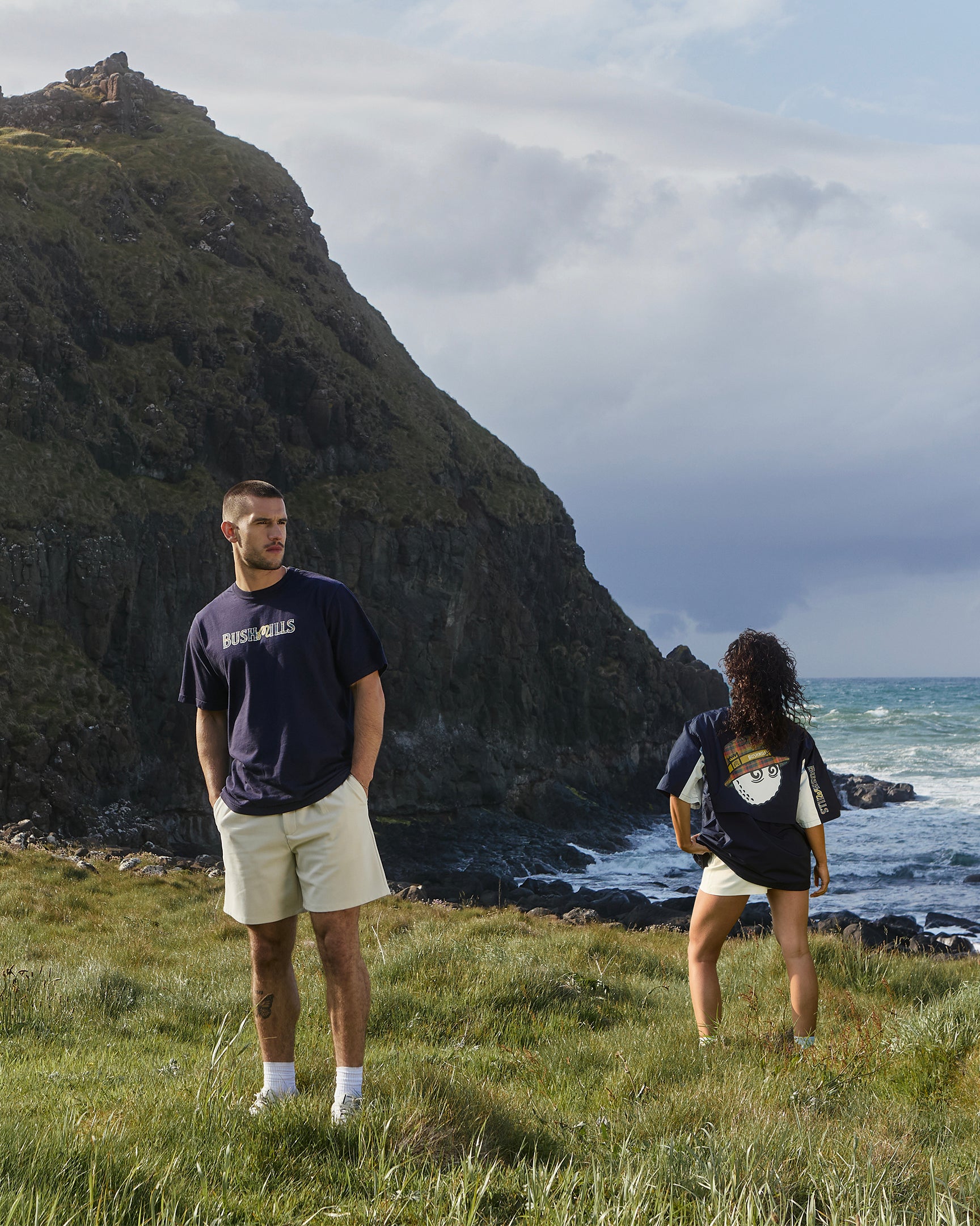 The Malbon x Bushmills T-Shirts come in Navy or White and feature the partnership’s iconic lockup on the front, and the Bushmills x Malbon Causeway graphic screen printed on the back