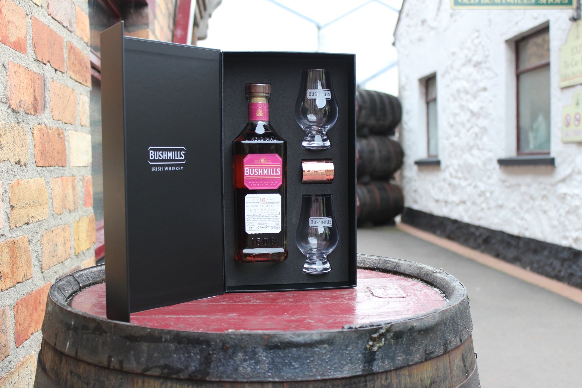 Bushmills 16 year old single malt whiskey is aged for 16 years in a combination of Oloroso sherry and bourbon-seasoned casks, then matured for about 1 year in port wine barrels. This unique maturation process gives this single malt its distinct notes of juicy fruits, nuts and spice, as well as a hint of ruby redness.