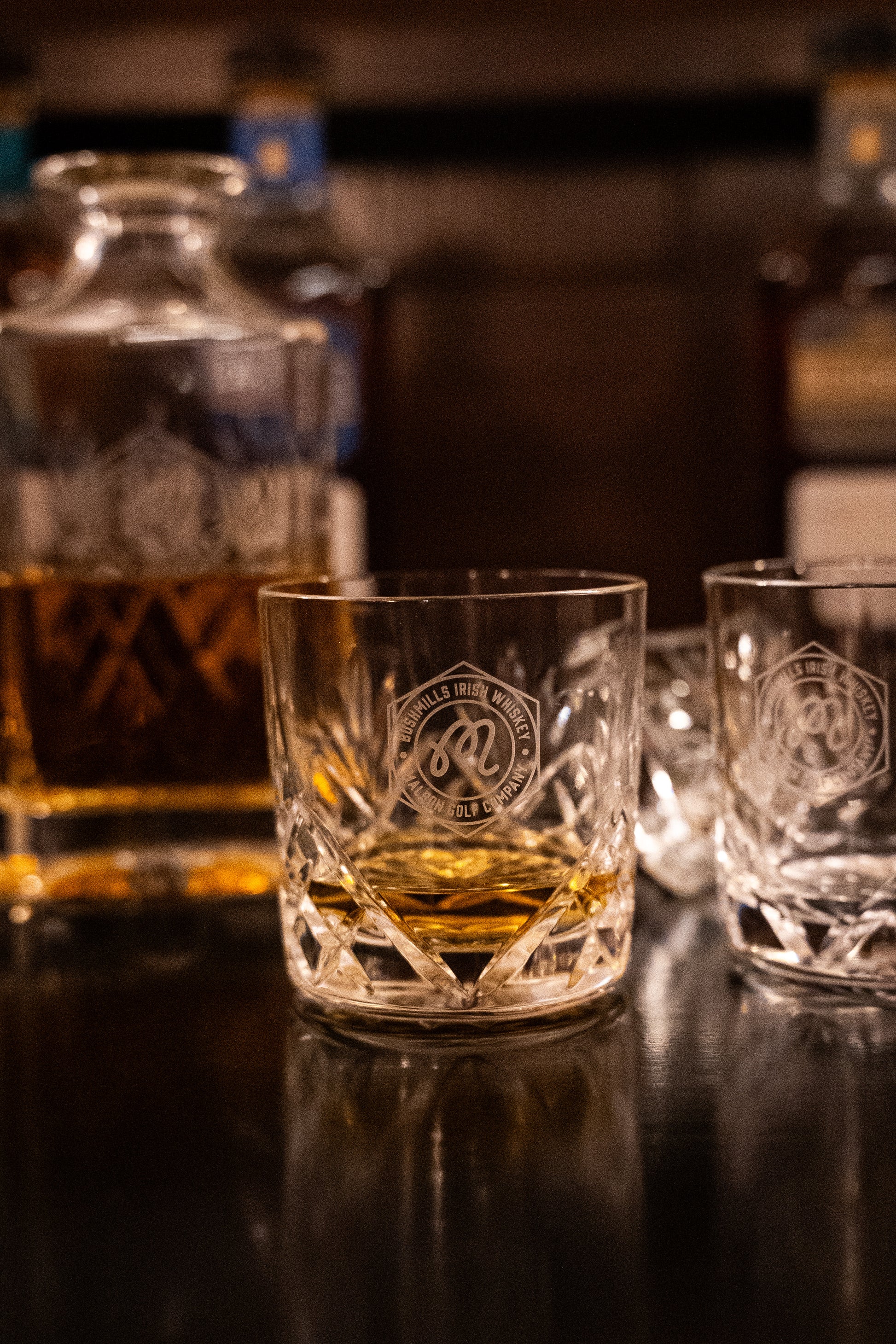 The Malbon x Bushmills Crystal Decanter Set features a hand-etched decanter with the collaboration’s signature marks and two crystal glasses. Available exclusively at the Bushmills Distillery in Northern Ireland and Bushmills.com